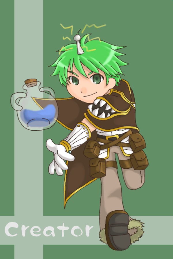 ROの公式っぽい絵を書いてる人のアルケミイラストを参考にして書いたんですが、これ左手で投げてるんですね!右手は剣とか持ってるってことにしといてください・・・