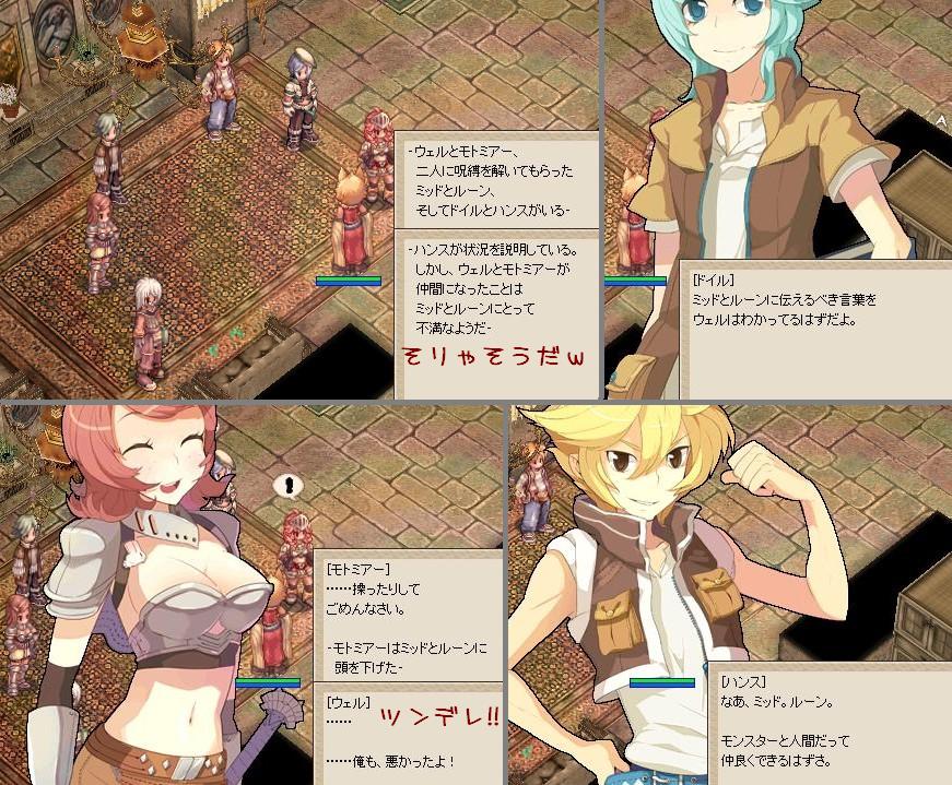 だけど仲があんまりよろしくない・・・ドイルの促しでモトミアーとウェルが謝った事でミッドとルーンもそれを許して一件落着?