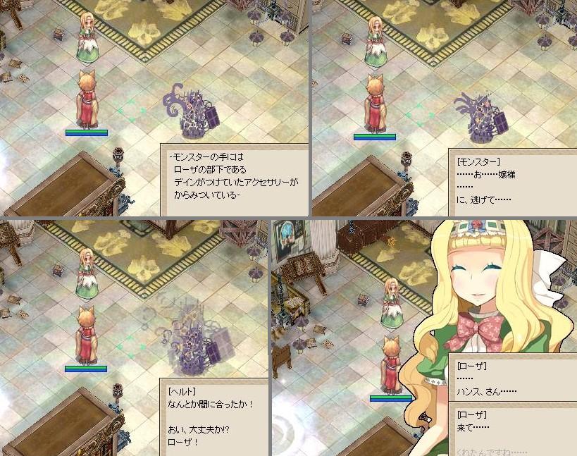 意識を失って凶暴になったモンスターに一撃を受けますが、ここでヘルトが登場して倒してくれます。意外と強い。でもローザの台詞ががが