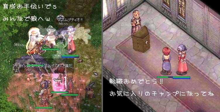 ヴァー君がプロボでタゲ取り、りゅういちさんが付与して、娘がハミング、フィーネちゃんがアサクロ演奏で加えて1.5倍なのもあってあっという間に転職Lvに@@