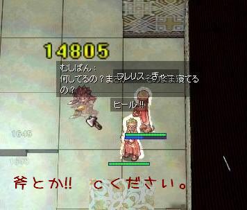 ジプシー転職後初の名無しだったんですが、ダンサーで行った時とは違ってステも低いし、しかも間違えてウィスパー肩のまま行ってたせいで死ぬ死ぬ。多少避けてくれたらいいカモ・・・と思ったけど幻想すぎたよorz