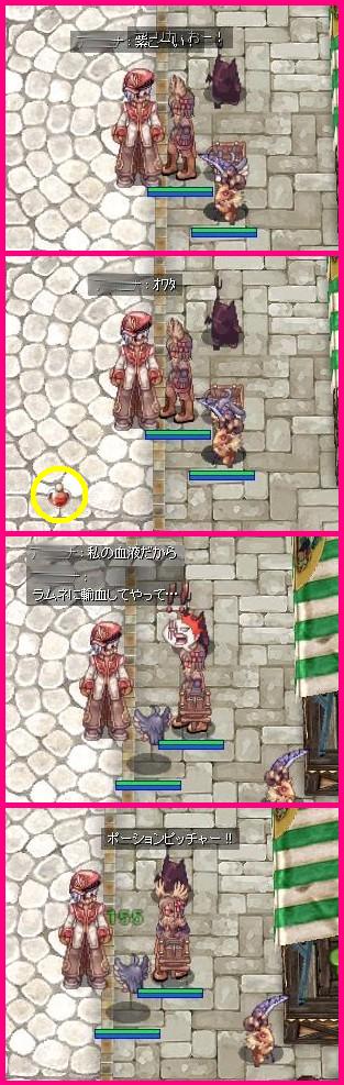 戻って清算して箱から出たのは、ニブルの清算の時も出た赤ぽ。またたでた!ってことで記念に4こま風にしてみた。ちょっと合成入ってるけど