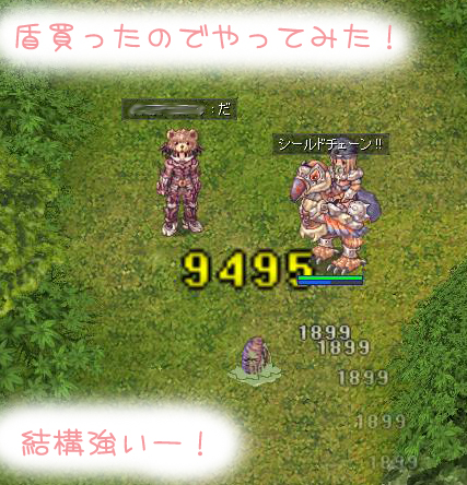 相手が相手なので、狩りで使うならこんなにはダメでないかもしれないけど何個か盾見つかったら過剰のを作ってニブルか騎士団あたりで投げたいなぁと思います。なんかチェーンするとパラディンって感じがするしねw