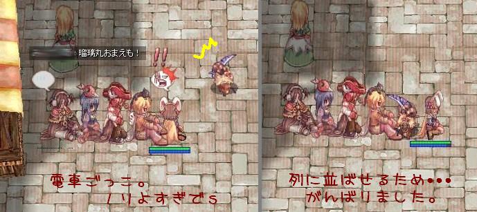 30分ほど待っても戻ってこないので、清算。カートに乗せて電車ごっこしたら全員便乗して列になっちゃったり。瑠璃丸まで召集@@