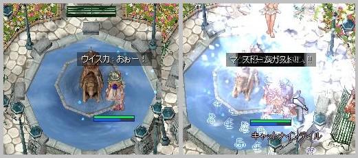 箱の後はSノビさんがお祝いだ、乗れとポタを出していたので私も乗ってみたら(一瞬カートに乗れって意味かと思った)・・・プロ中央の噴水の中Σ(・ω・ノ)ノ!