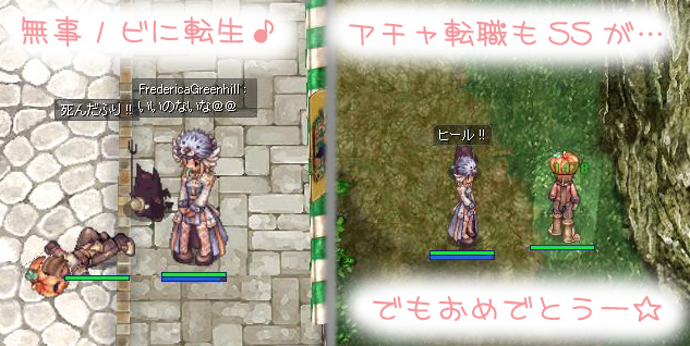 星影さんと一緒に転生を見届けに行ったんですが即話しかけて転生しちゃったのでSS撮れなかった…アチャ転職も追いかけていったらすでに転職してカプラに行ってたしΣ