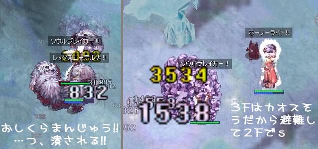 この日から1.5倍期間ってことで3F前WPは2PCの山!中も相当混んでるだろうな・・・ってことで2Fで狩りすることに。経験値増えても敵倒せなかったら意味が無いしね@@