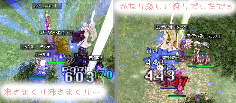 前衛陣星影さん、フィーネちゃんも踊りがあるのでスキルを結構連射しててハデでした。だけど、モンハウに遭遇することも多く犠牲者が…かなり転がしちゃってごめんね…(´・ω・`)