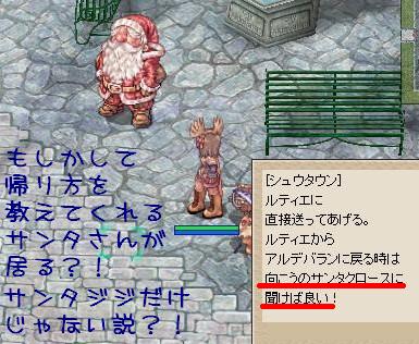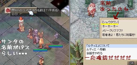 確かサンタジジだったよなーと思いつつもなんか不安なのでルティエに確認に行く事に。ここで初めて気づく、リンクサンタにも名前があったなんてw
