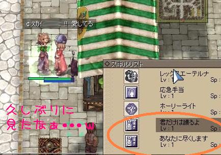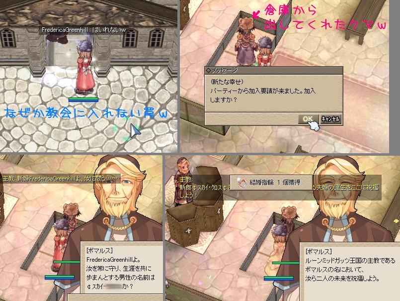 十字軍の後のおしゃべりが終わるころにスカイが見つかって話してたんですが(アサヒナがしばらくお休みとかいう話ねw)当たって砕けろ!な感じで結婚を申し込んでみた!!(あ、再婚か・・・