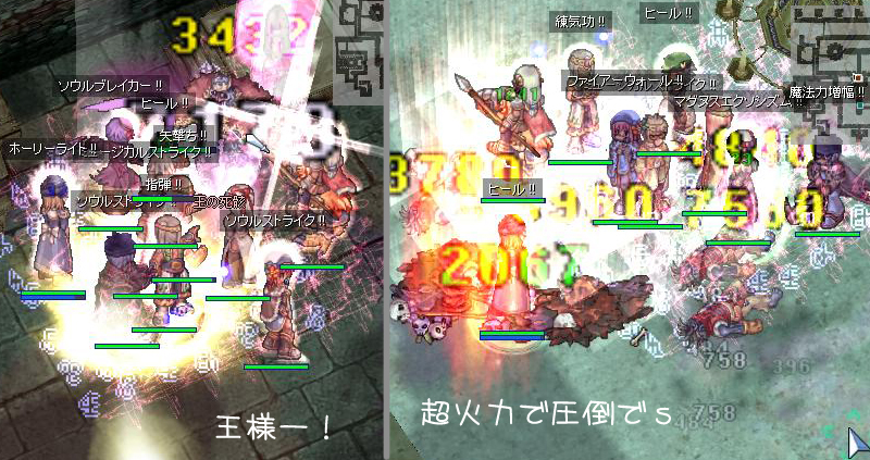 比較的ラグの機嫌がよかったせりかさんLKを前にして最初は歩いてたのですが、やっぱり大人数、移動は大変!ってことでクエストの王様倒した後は中央固定となりました。