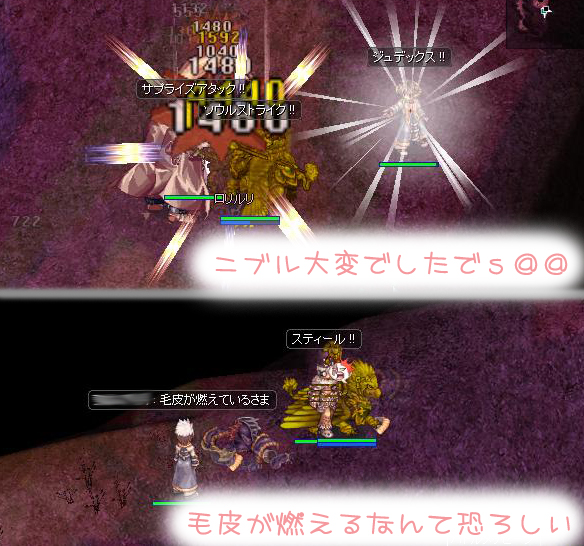 ゼロさんとらっこが火力だったんですがニブルのモンスターが結構硬くて大変大変ヾ(・ω・`;)ノ